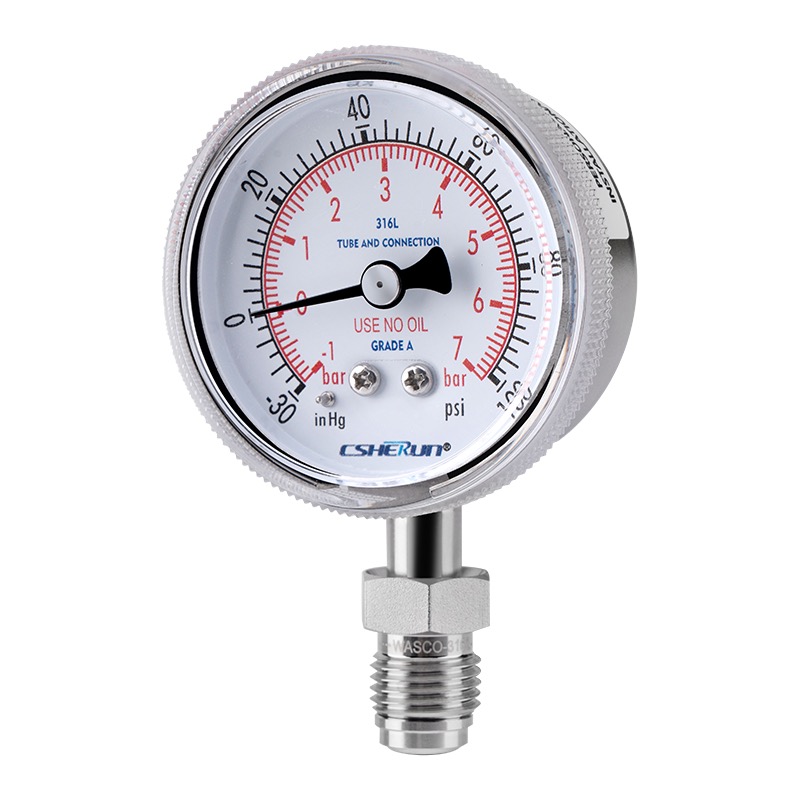 VCR 1/4 Same Face Seal Swivel, spárovaný s naším tlakoměrem s ultra vysokou čistotou (UPG, H-tlak),